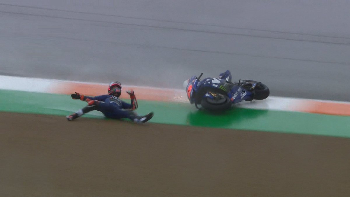 Setelah red flag, balapan dimulai lagi, tragedi MotoGP Valencia berlanjut Bautista dan Valentino Rossi mengalami kecelakaan.